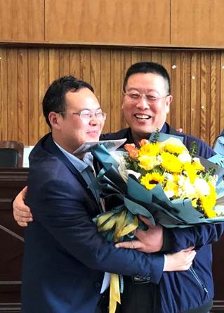 赵永亮介绍新入编教师和盐城市黄海明珠人才引进方案,焦微玲主持张思强教授荣休仪式,卜树春主持申报职称教师述职和民主测评。