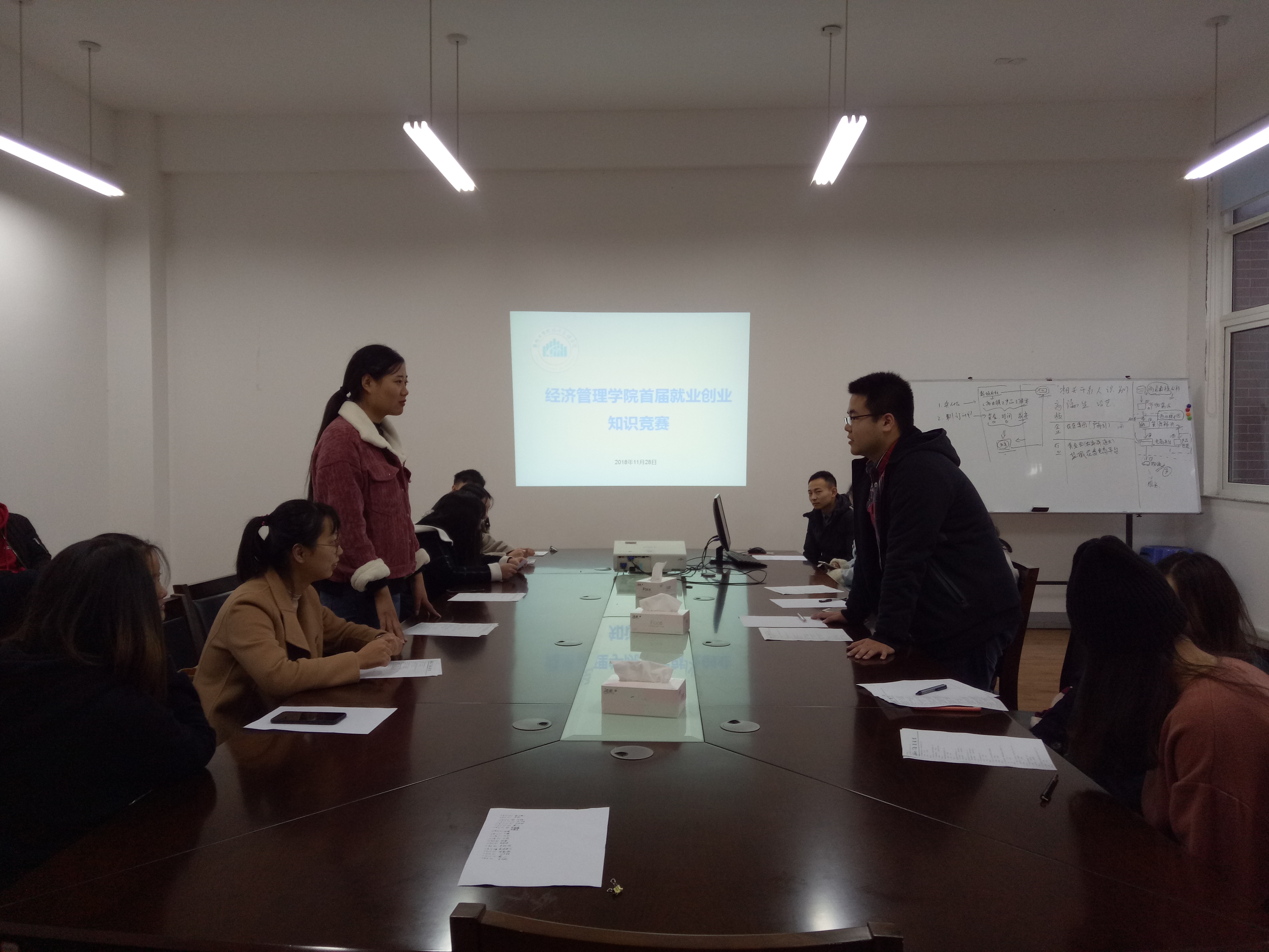 为帮助大学生群体认清角色位置,增强就业意识,培养创业精神,走好踏入社会的第一步。11月28日下午,365英国上市在仁和楼B202成功举办就业创业知识竞赛,经管学院学工办主任陈广正出席指导并担任评委,学生会就业创业部洪锐和房雨鹏同学主持,共九组选手参加。