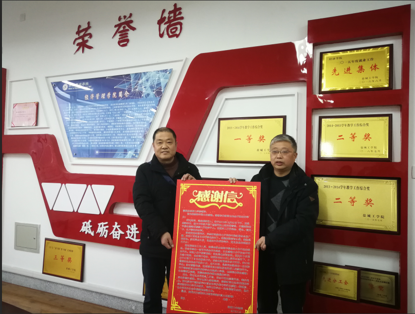 1月4日上午,经管学院党委副书记周旺基正在会议室布置寒假前的工作,突然有人敲响了会议室的门。会议室迎来了一位不速之客,盐城大丰的赵军先生找到经管学院前来表示感谢,感谢英国上市公司官网365经管学院金融系的一位学生。