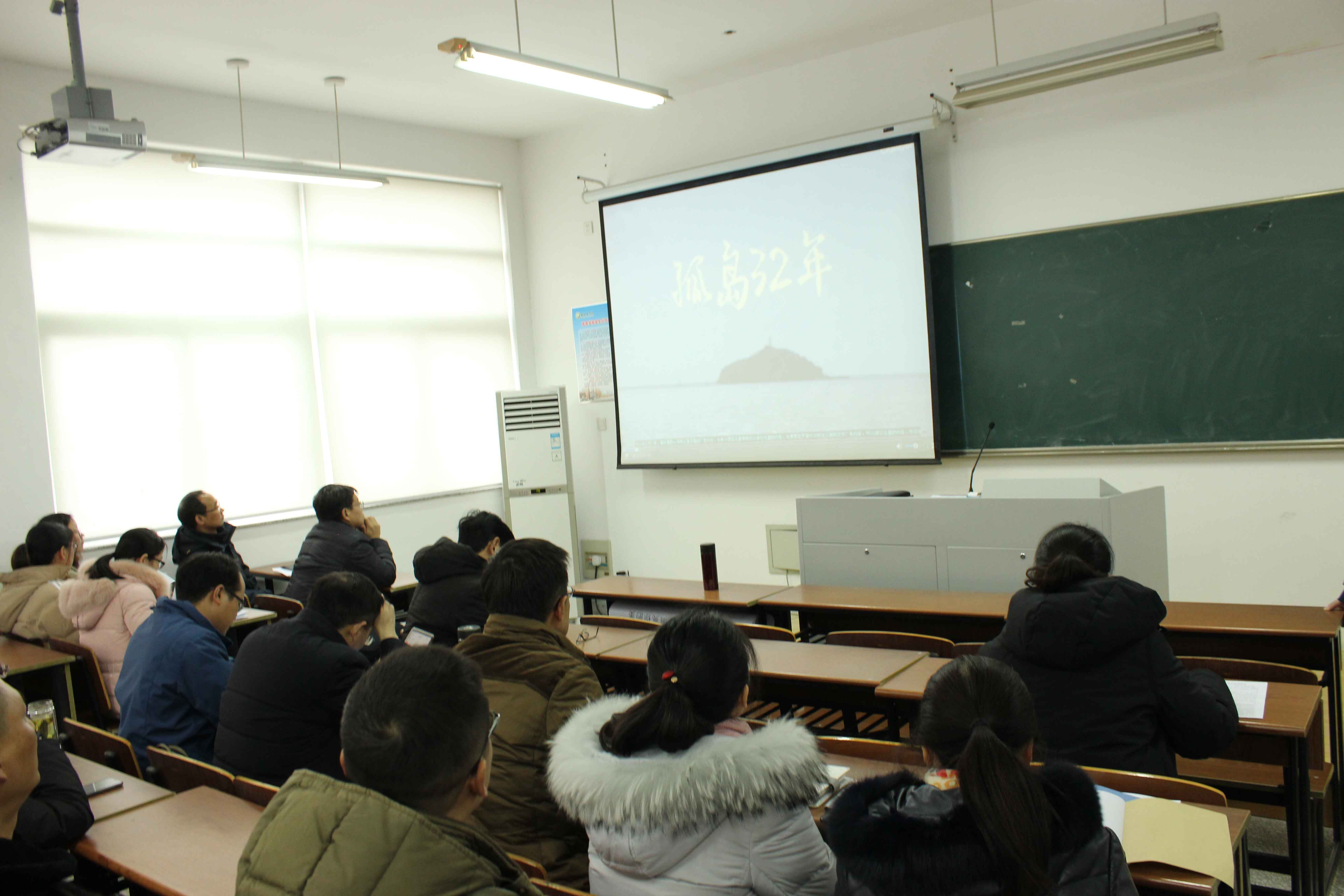 1月9日下午,经管学院全体教师和党员在仁和楼B406会议室集中观看《孤岛32年》纪录片,学习王继才同志守岛舍家、至死方休的爱国敬业精神。学院党委书记卜树春主持。