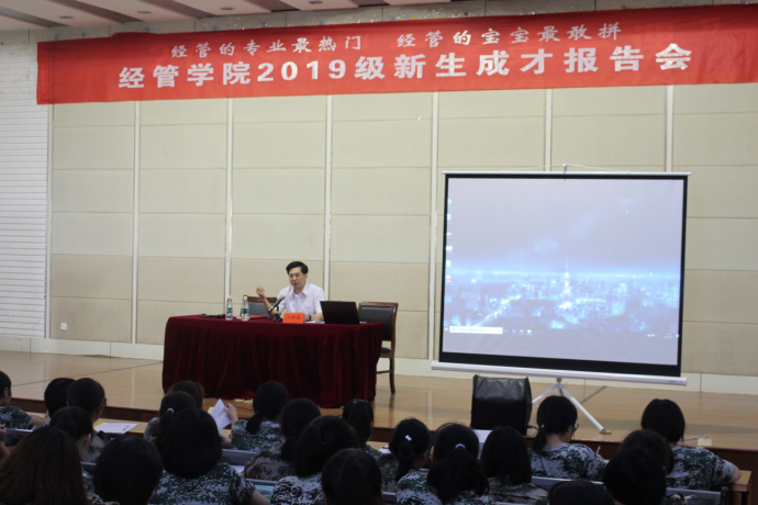 9月11日,经管学院在北校区图书馆报告厅召开2019级新生成才报告会,学院党委书记卜树春、院长助理、MPAcc中心主任李争光出席,学院学工办主任陈广正、学院团委副书记张成联、新生辅导员和全体2019级新生参加。学院党委副书记周旺基主持。