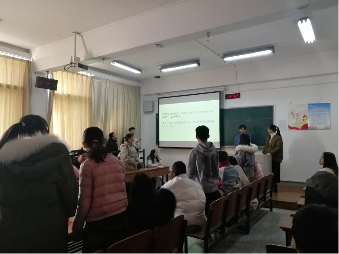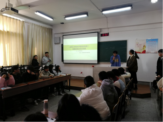 12月11日下午,经管学院在北校区博雅楼306教室举办“打开职场大门,成就美好未来”主题就业知识竞赛,共有七组成员参加比赛,辅导员杨阳、邱天星、学生代表共40余人到场观看,万诗佳、杜向伟主持本次活动。