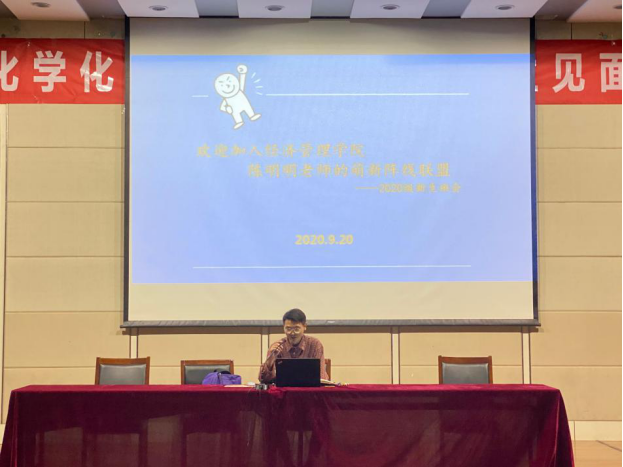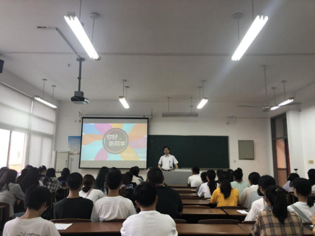 周旺基从请假制度、文明课堂、宿舍安全、学习相关和目标期望五个方面进行展开,勉励新生终身学习,始终保持一颗求知的心,注意强身健体,做有规矩、有温度、有目标的新时代大学生。他指出,这次的迎新现场是大家经历的“大学第一课”,希望同学们勇于独立,善于独立,直面挑战,在经管学院幸福生活、快乐学习。