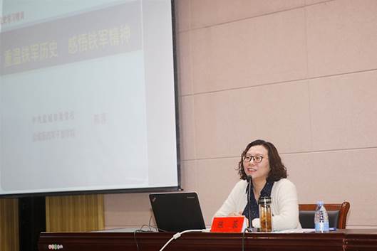 陈蓉以时间为轴线,结合重要的历史事件、战斗、战役、重要历史人物,详细讲述了新四军从无到有,由弱到强,不断发展壮大的发展过程,以及在这个过程中,新四军形成的铁军精神,即听党指挥的铁的信念、报国为民的铁的担当、英勇顽强的铁的作风、执纪严明的铁的纪律。她强调,铁军精神是新四军坚持九年多抗战并最终取得胜利的强大精神武器和力量源泉。她认为,人无精神不立,国无精神不强。中国特色社会主义进入新时代,我们要进一步传承和弘扬新四军铁军精神,用铁军精神磨砺坚强意志,用铁军精神筑牢思想堤坝,用铁军精神塑造高尚人格,攻坚克难、不断前行。本次专家报告会,也是我院党史学习教育的重要组成部分。