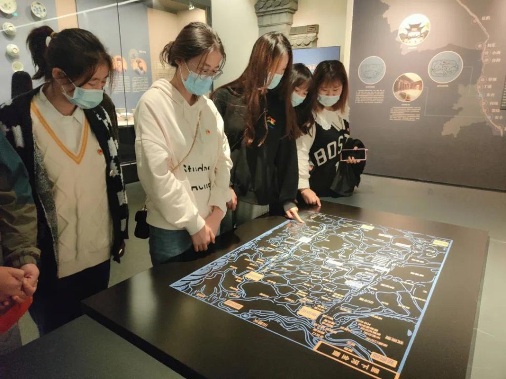 B电商202班赵晨羽同学为大家作介绍,带领大家感受盐城的精神坐标——盐城市博物馆。她围绕馆内的珍贵藏品和红色文物,为大家介绍了盐阜大地上可歌可泣的革命历史,讲述了盐阜儿女光辉的革命事迹,从过去、现在和未来三个维度展现了一座历史文化名城。一幕幕鲜活的影像资料,一处处生动的复原场景,一件件珍贵的历史文物,展现了盐阜人民艰苦卓绝的抗战历程,更彰显出中国人民抗战必胜的坚定信念。回首革命的各个历史时期,不仅盐阜大地上的人民作出了极大的牺牲,更有很多来自全国各地的人民子弟兵抛头颅,洒热血,把青春力量贡献给了这片土地,造就了这块红色沃土。经过血与火的锻造与洗礼,先辈们在盐阜大地上镌刻下百年沧桑的历史画卷,也为后代的我们留下了宝贵的精神财富。