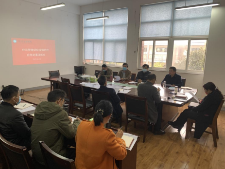 3月14日上午,经管学院在仁和楼B202会议室举办疫情防控应急处置演练会,学院处科级干部、专业系主任、专兼职辅导员参加演练。